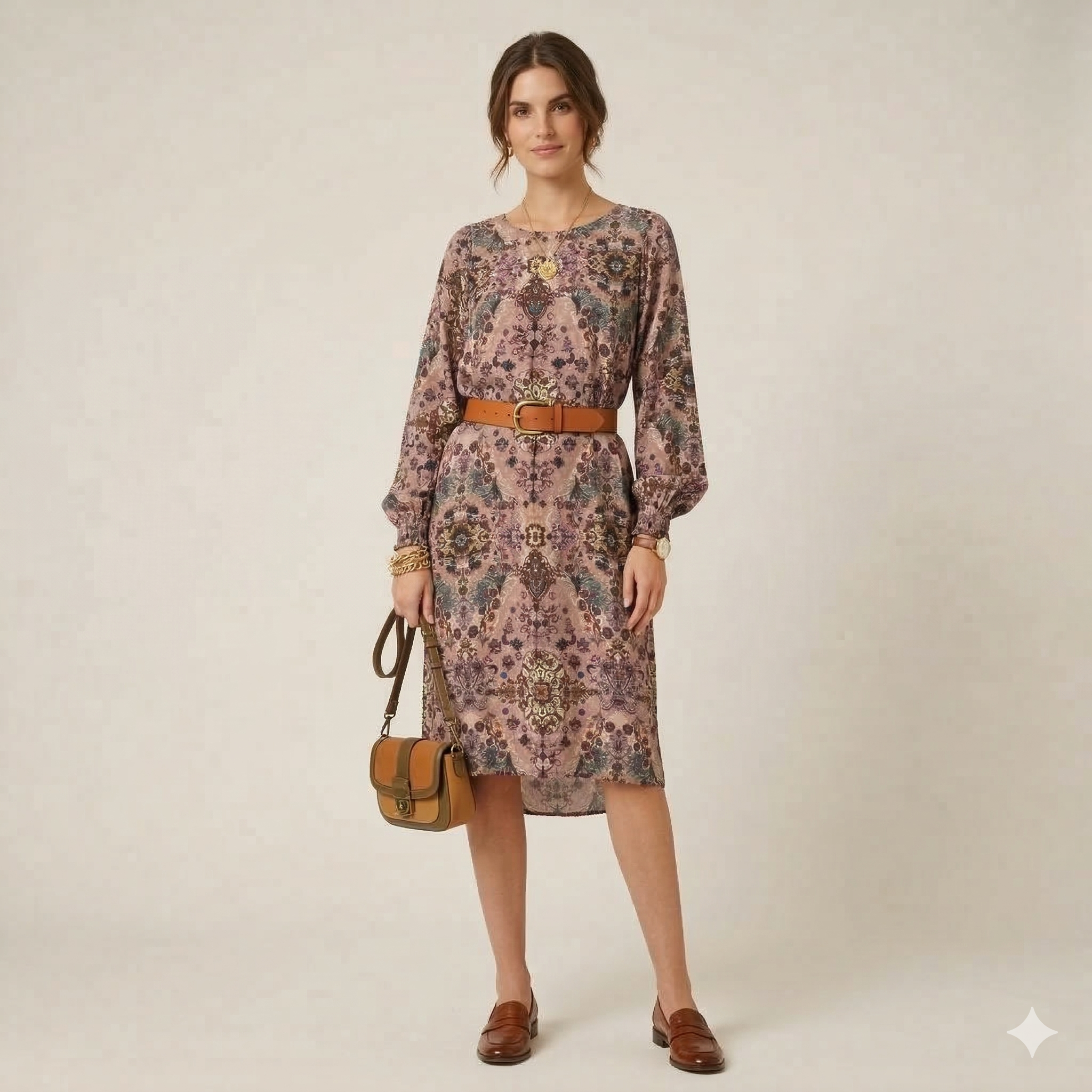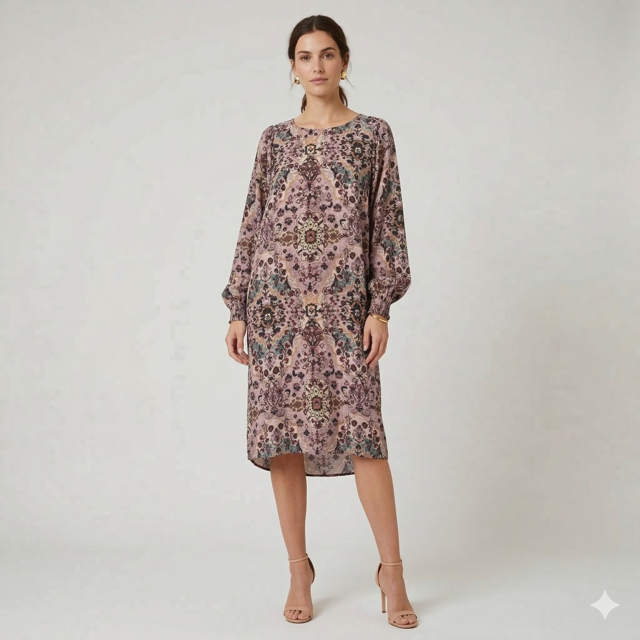 SC-Herta 3 is a feminine dress made form 100% sustainable viscose. This colourful dress has a nice all over print, a wide round neckline and long sleeves. Layer it over a pair of jeans for a nice and colourful everyday look.
