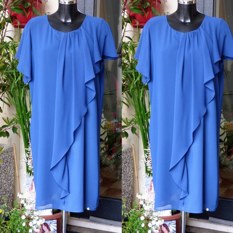 Il vestito ha la manica corta ed è realizzato in morbido tessuto chiffon, ideale per la bella stagione.