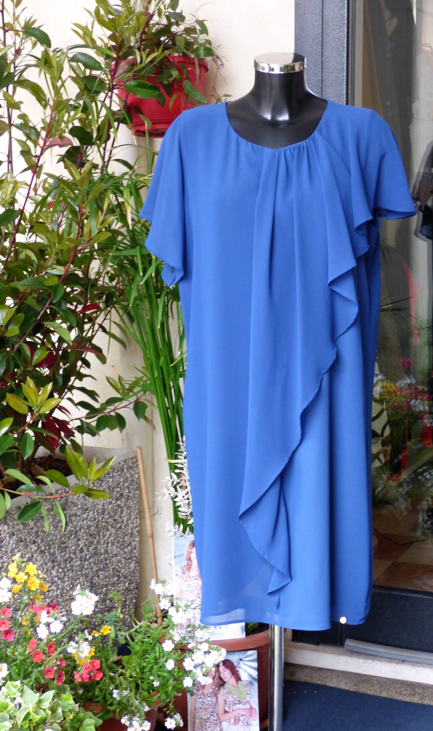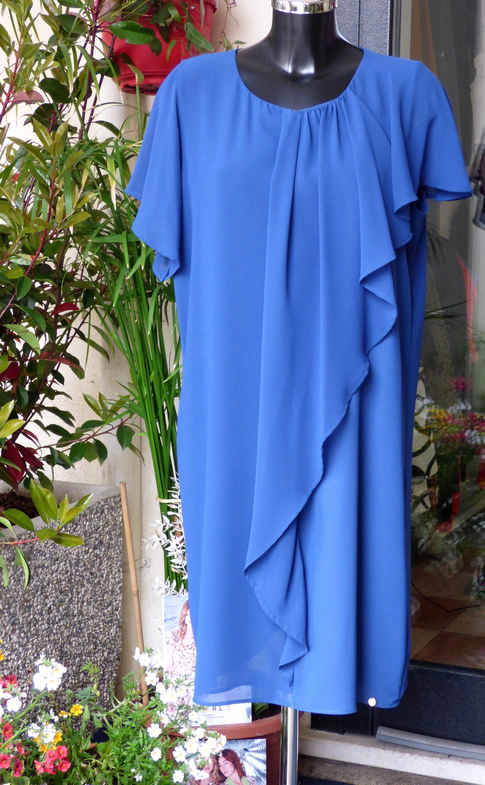 Il colore è un bel blu acceso, mentre il drappo a volant sul davanti regala un tocco di stile ad un outfit dalle linee pulite ed essenziali.