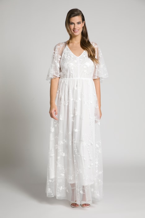 Abito lungo Ulla Popken bianco con ricami, pensato per occasioni speciali e cerimonie con un’eleganza luminosa e femminile. Un capo curvy da campionario che valorizza la silhouette con una linea fluida e un aspetto raffinato.