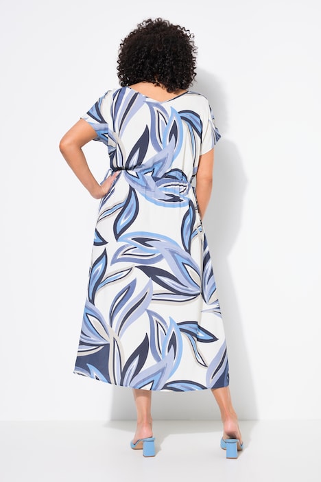 Abito da campionario Ulla Popken azzurro vintage con coulisse e fantasia.