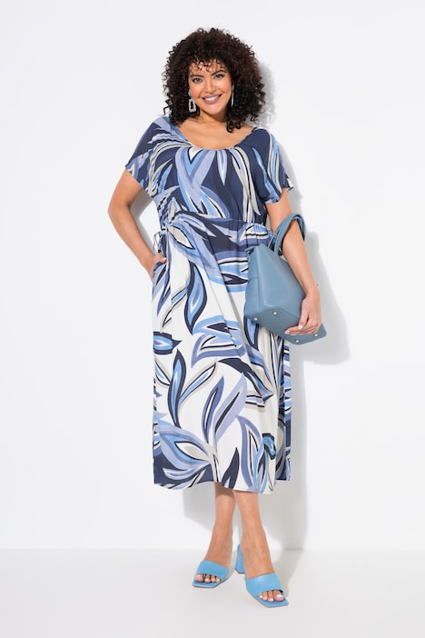 Abito Ulla Popken da campionario in azzurro vintage, con coulisse e fantasia. Un modello fresco e femminile, capace di dare leggerezza al look.