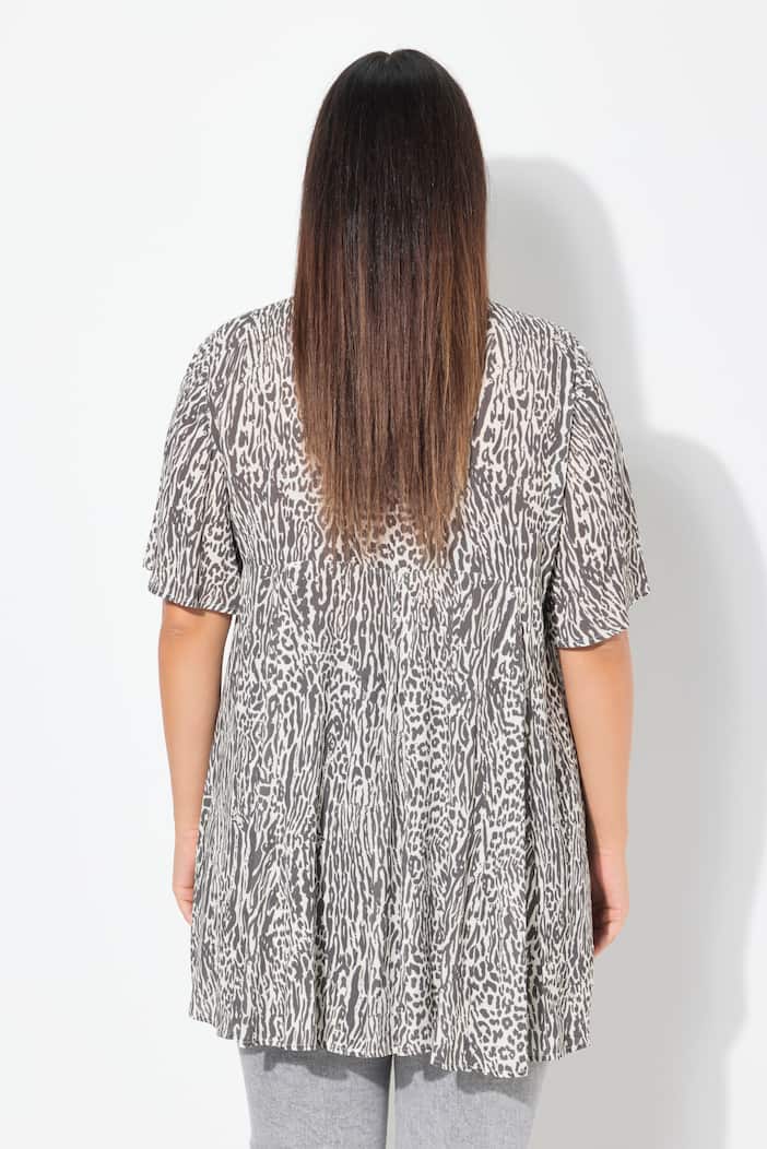Blusa Ulla Popken da campionario con fantasia animalier su fondo bianco, pensata per dare personalita al look con una vestibilita morbida e ariosa.