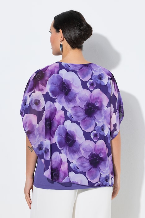Blusa Ulla Popken da campionario in chiffon stampato, proposta in tonalitร lilla. Un capo leggero e femminile, pensato per outfit raffinati e di stagione.