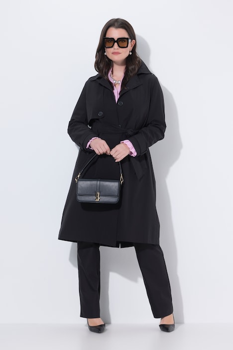 Trench coat Ulla Popken da campionario in dark marine, pensato per completare con eleganza i look curvy di mezza stagione.