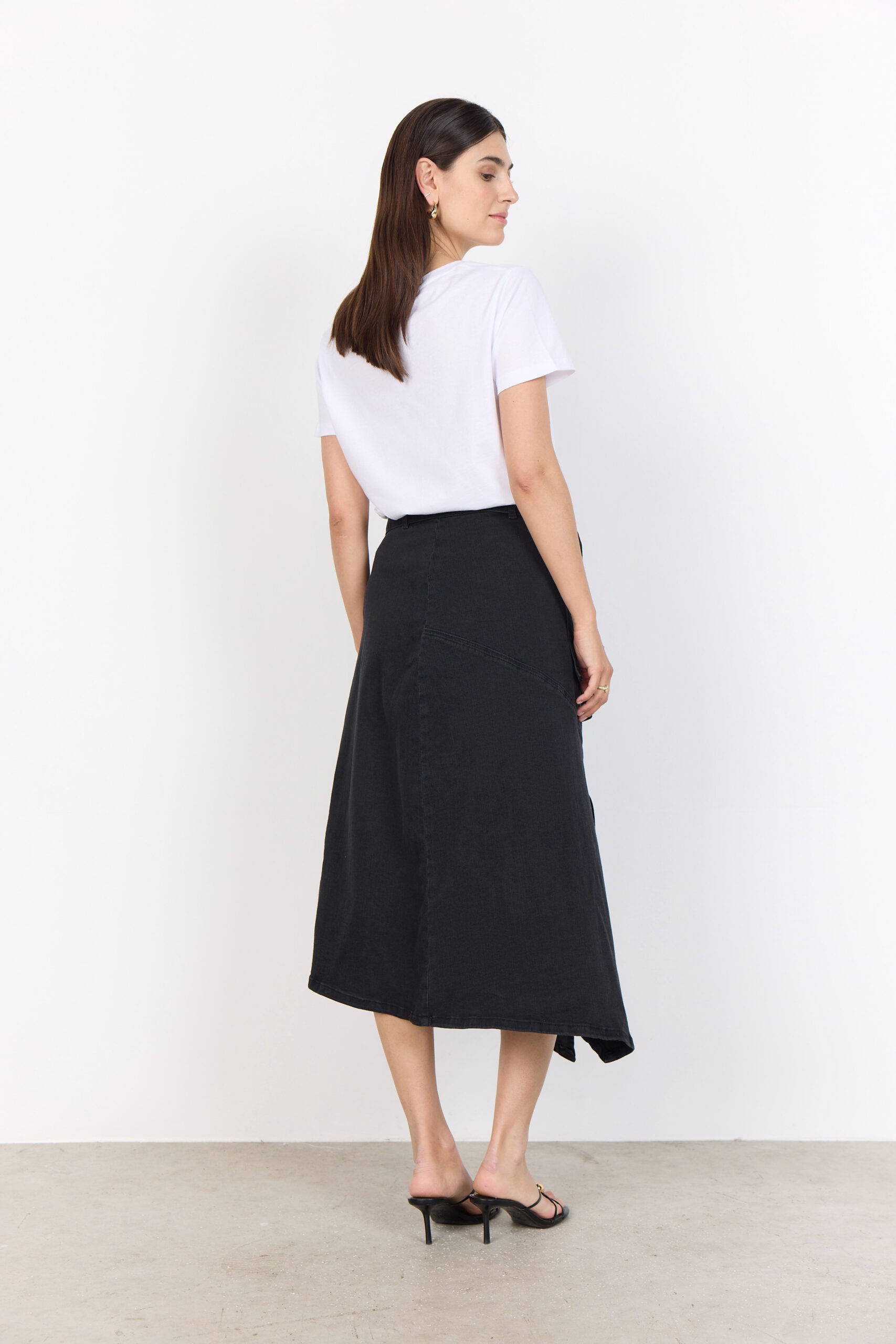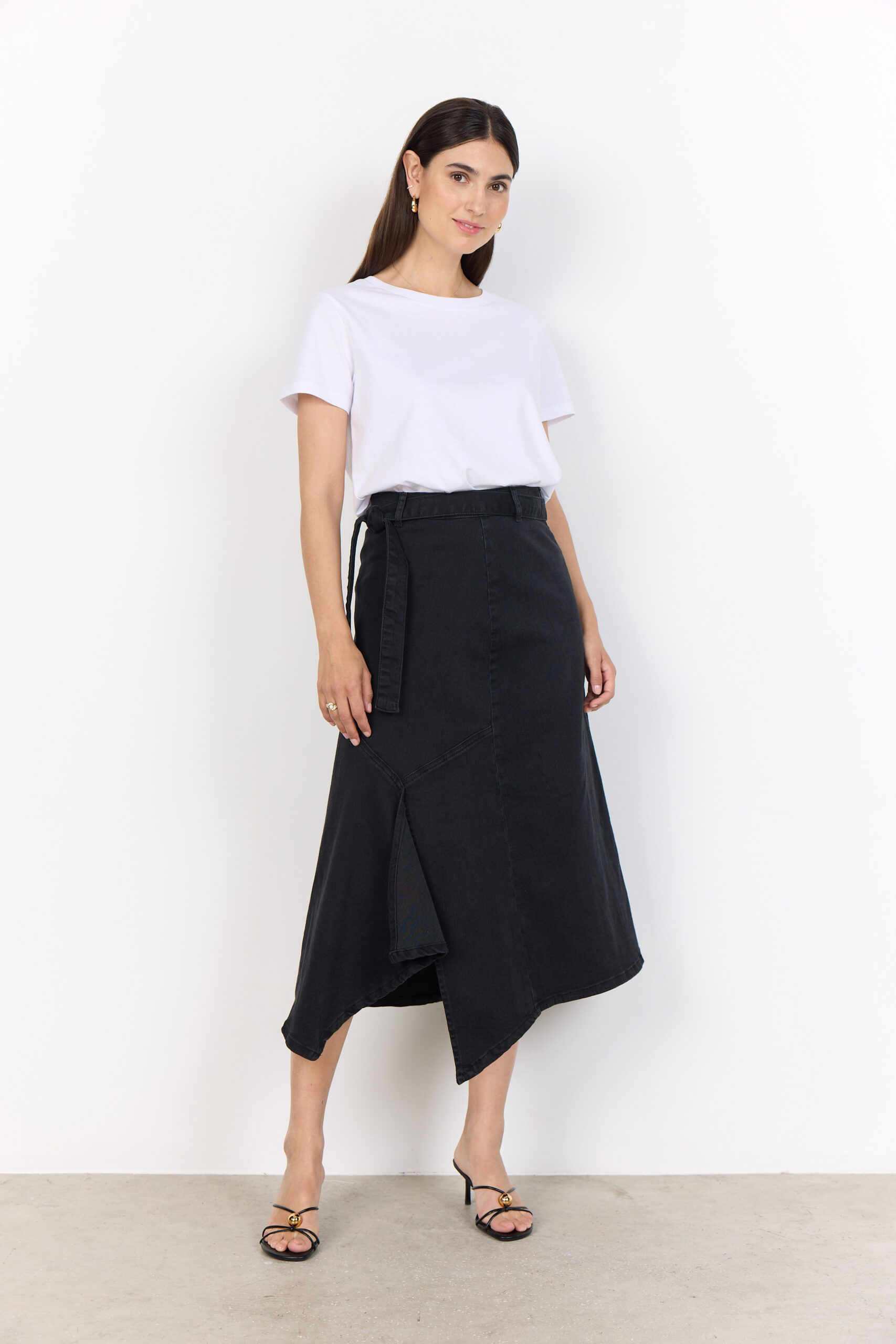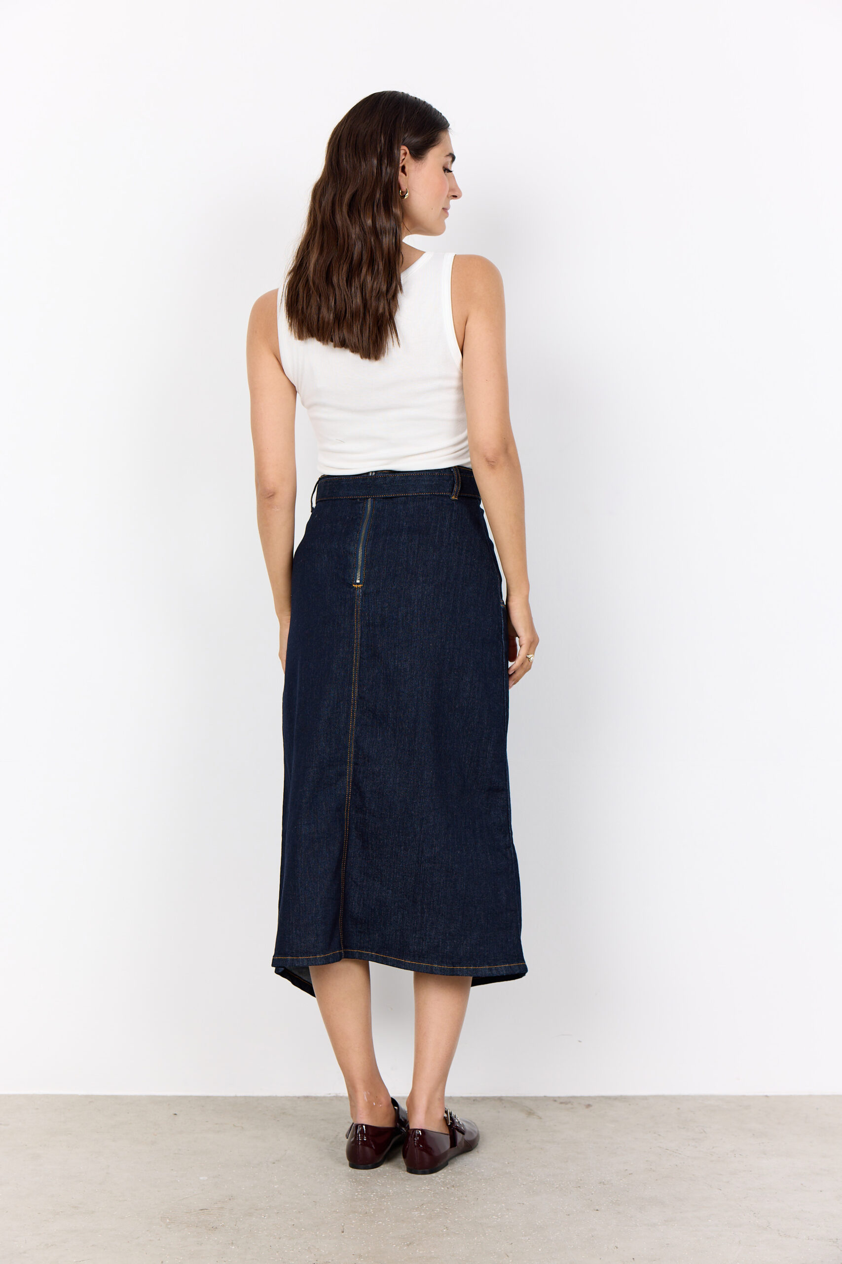La gonna SC-Kimberly 40 unisce modernità e comfort in un capo versatile e femminile. Realizzata in 81% cotone, 17% poliestere e 2% elastan, è arricchita da una cintura regolabile in vita, una linea asimmetrica con spacco laterale e una pratica chiusura con zip sul retro.