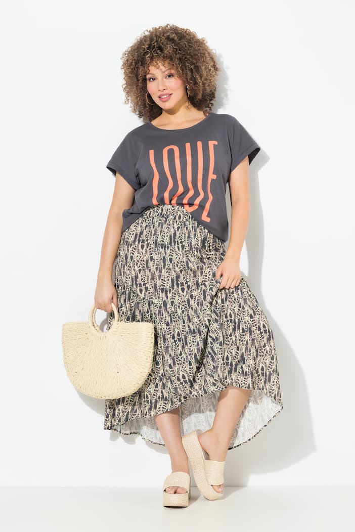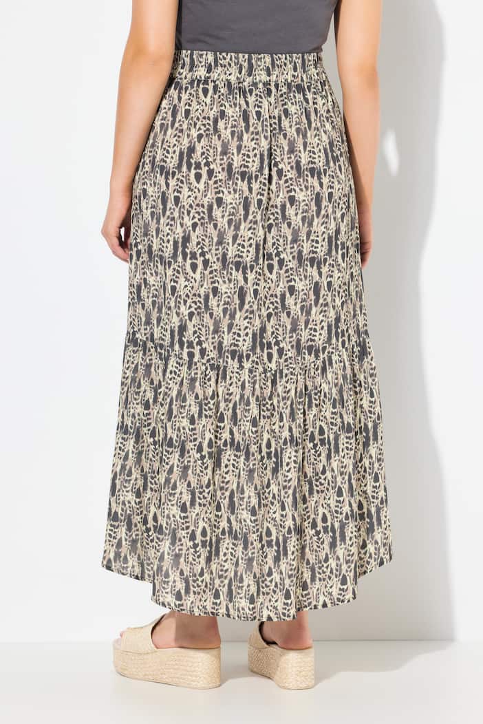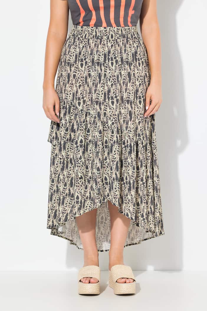 Gonna Ulla Popken da campionario in verde salvia chiaro con stampa leggera e linea asimmetrica, pensata per dare movimento al look con una vestibilita curvy morbida e femminile.