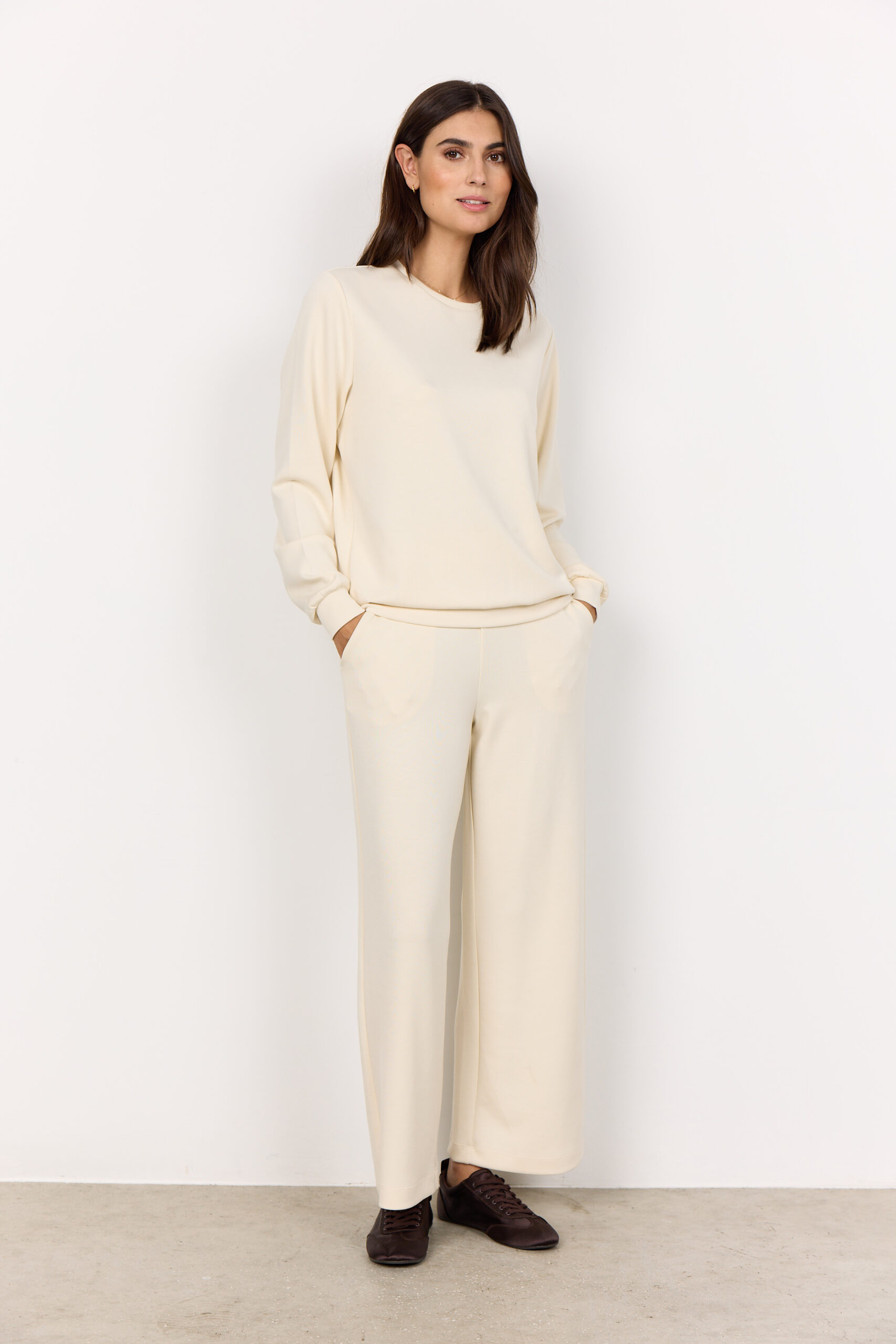 La felpa SC-Banu 185 è un capo comodo e trendy, perfetto per creare look casual e sportivi. Realizzata in una morbida miscela di modal, poliestere ed elastan, ha una vestibilità morbida e rilassata, con scollo tondo, maniche lunghe e una stampa “femme” sul retro che aggiunge un tocco femminile e moderno.