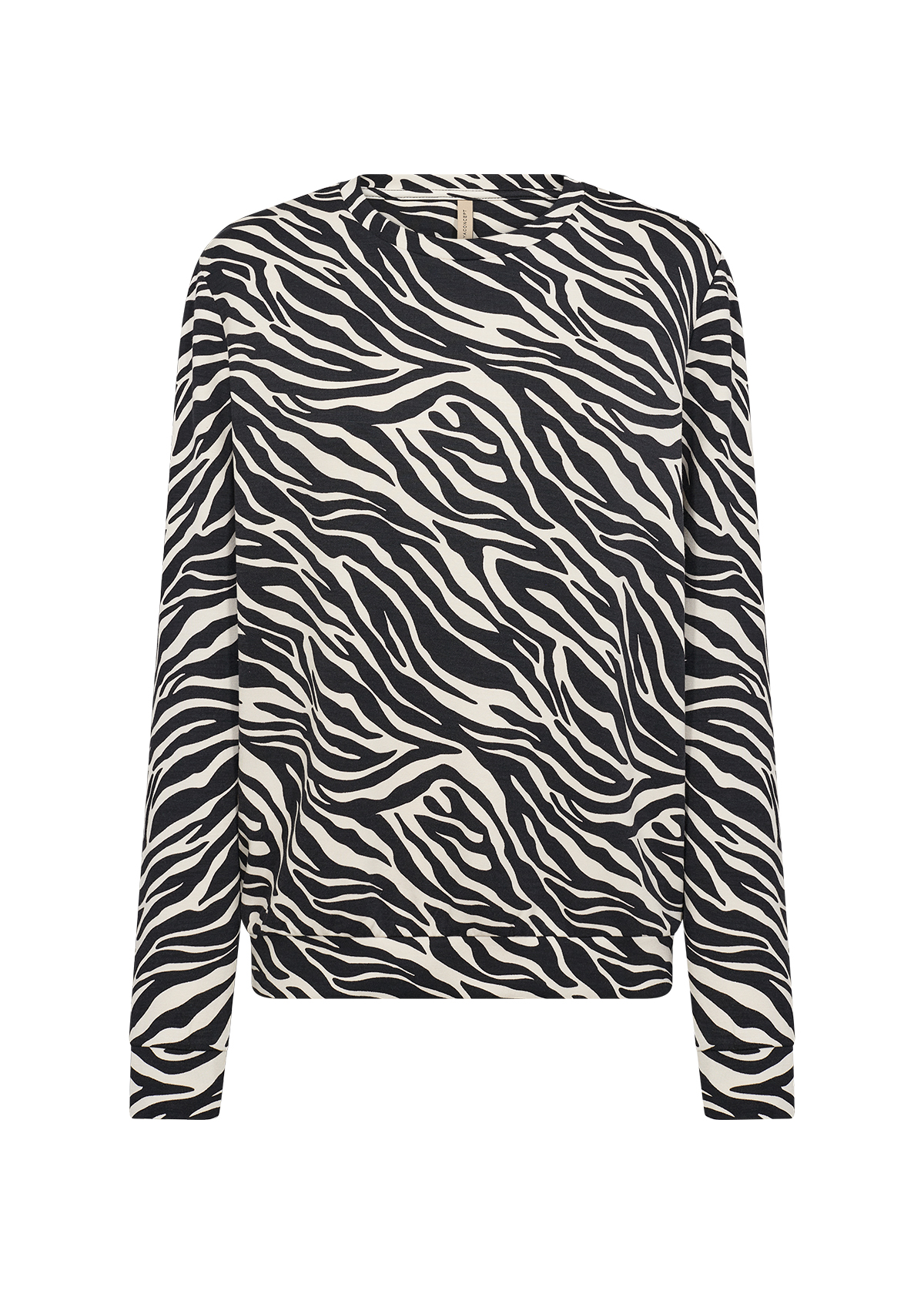 Il design presenta una stampa zebrata di forte impatto, scollatura rotonda, maniche lunghe con polsini e un leggero effetto puff sulle maniche che aggiunge volume e femminilità. Perfetta per un look smart-casual, da indossare con jeans per un tocco trendy o con una gonna per un outfit più elegante.