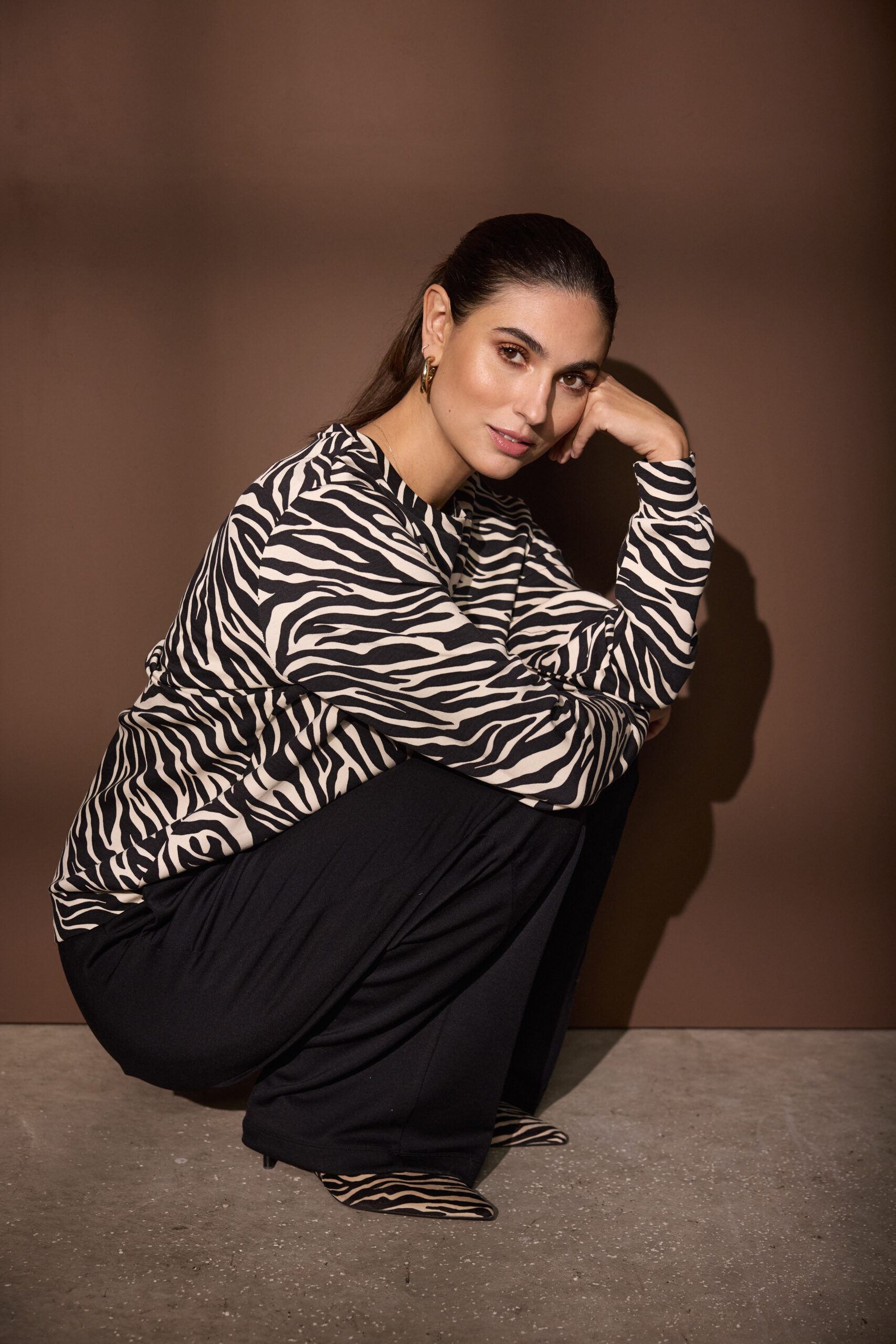 blusa zebrata donna, blusa moda animalier, blusa modal elegante, blusa anti stress, blusa smart casual, blusa animalier zebrata