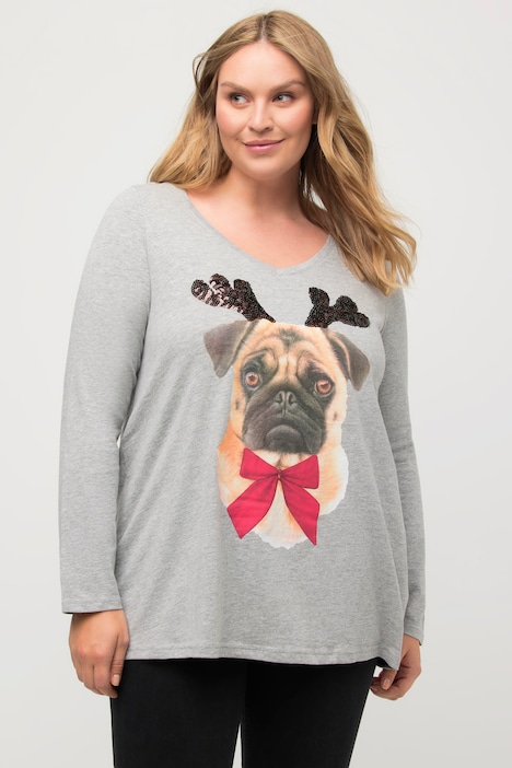 Ulla Popken maglia natalizia con carlino grigio melange e un capo originale da campionario pensato per chi cerca una maglia comoda, simpatica e facile da indossare durante il periodo delle feste.