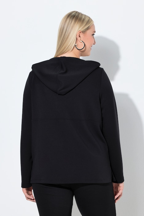 Felpa con cappuccio Ulla Popken in nero, proposta da campionario in taglia vendita 48-50.