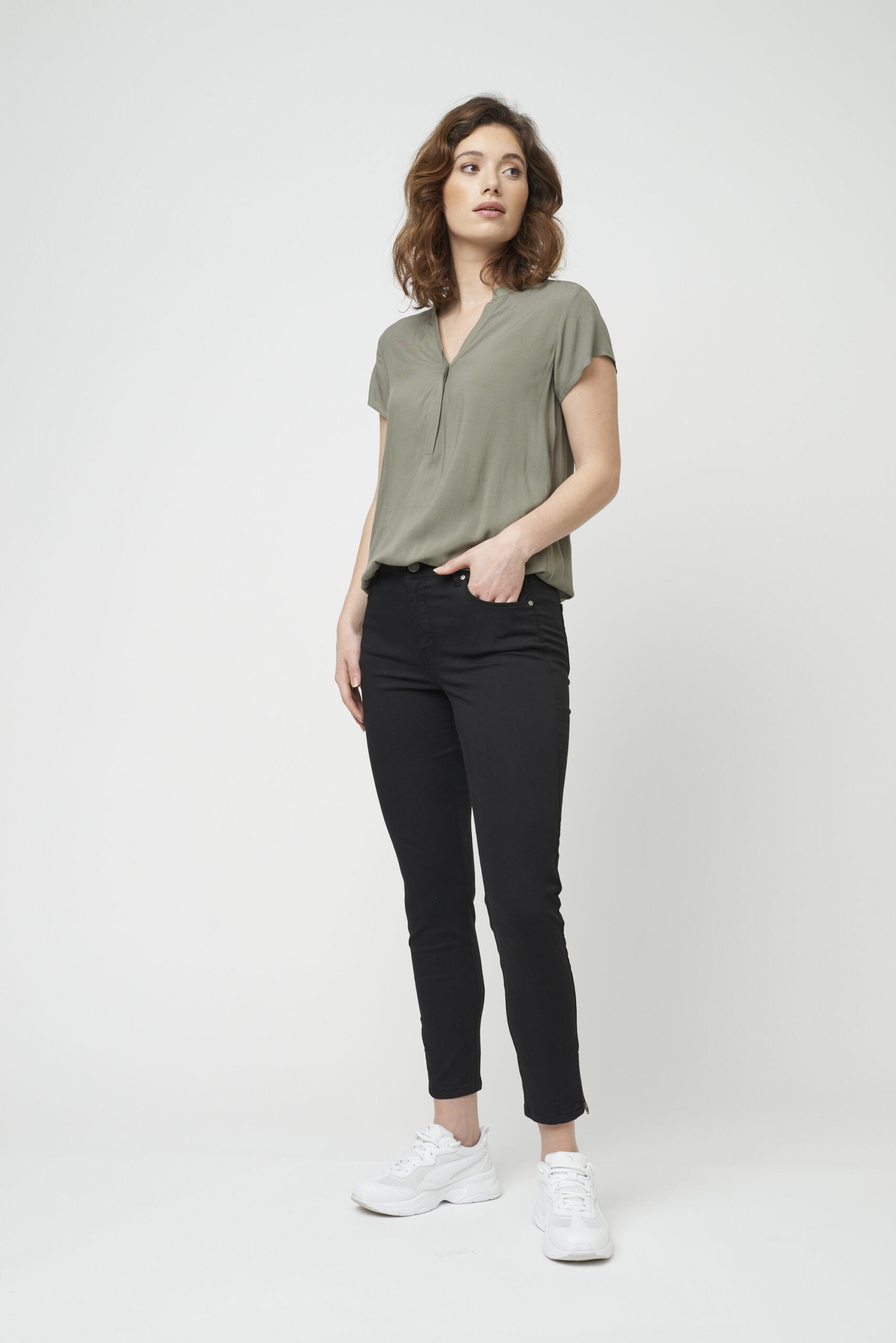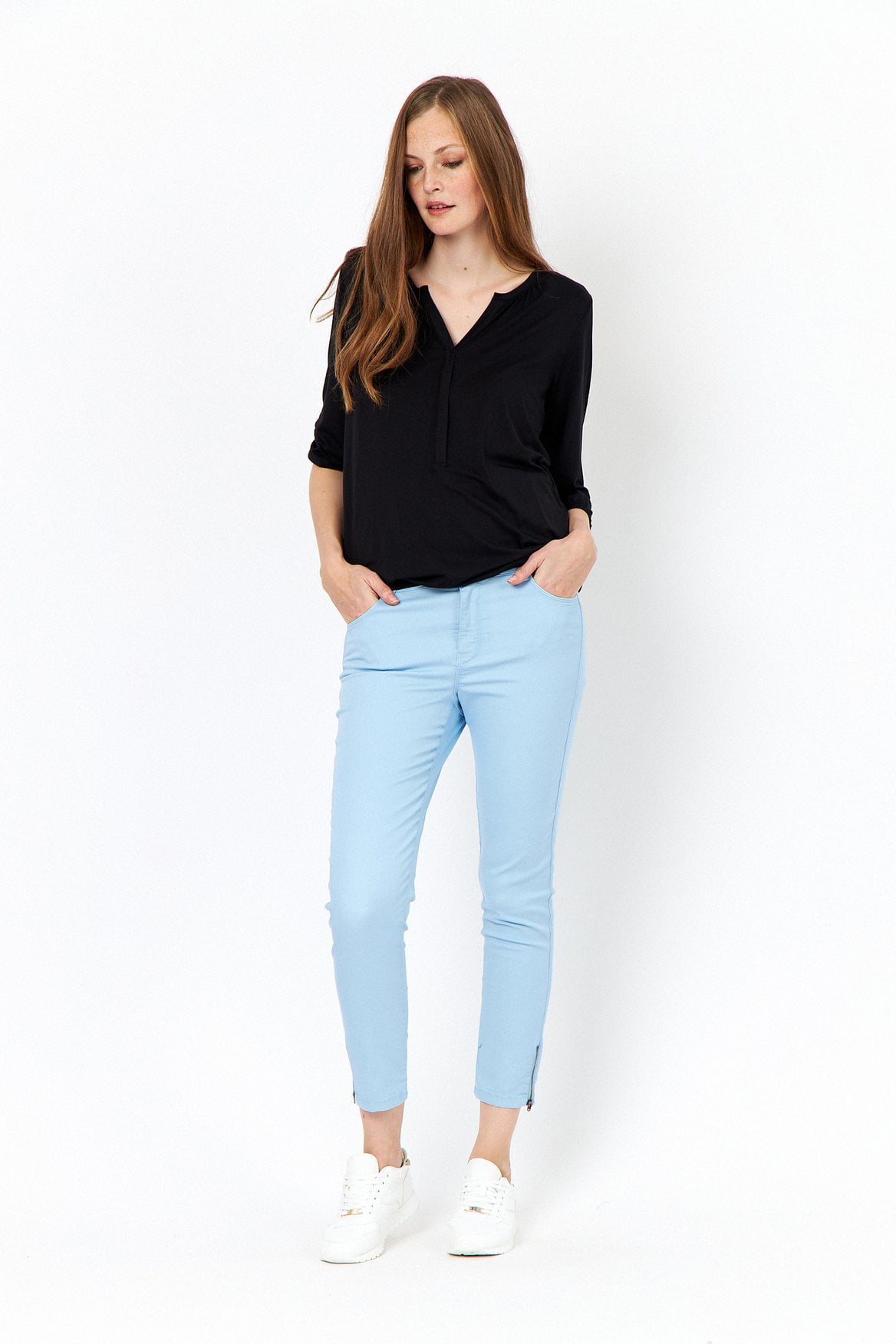 SC-Shadi PS Patrizia 3-B is a pair of pants in a stretchy cotton/polyester quality. The pants are high waisted, slim fitted and designet with a nice zipper detail at the ankles. Style them with a dress or a feminine blouse.